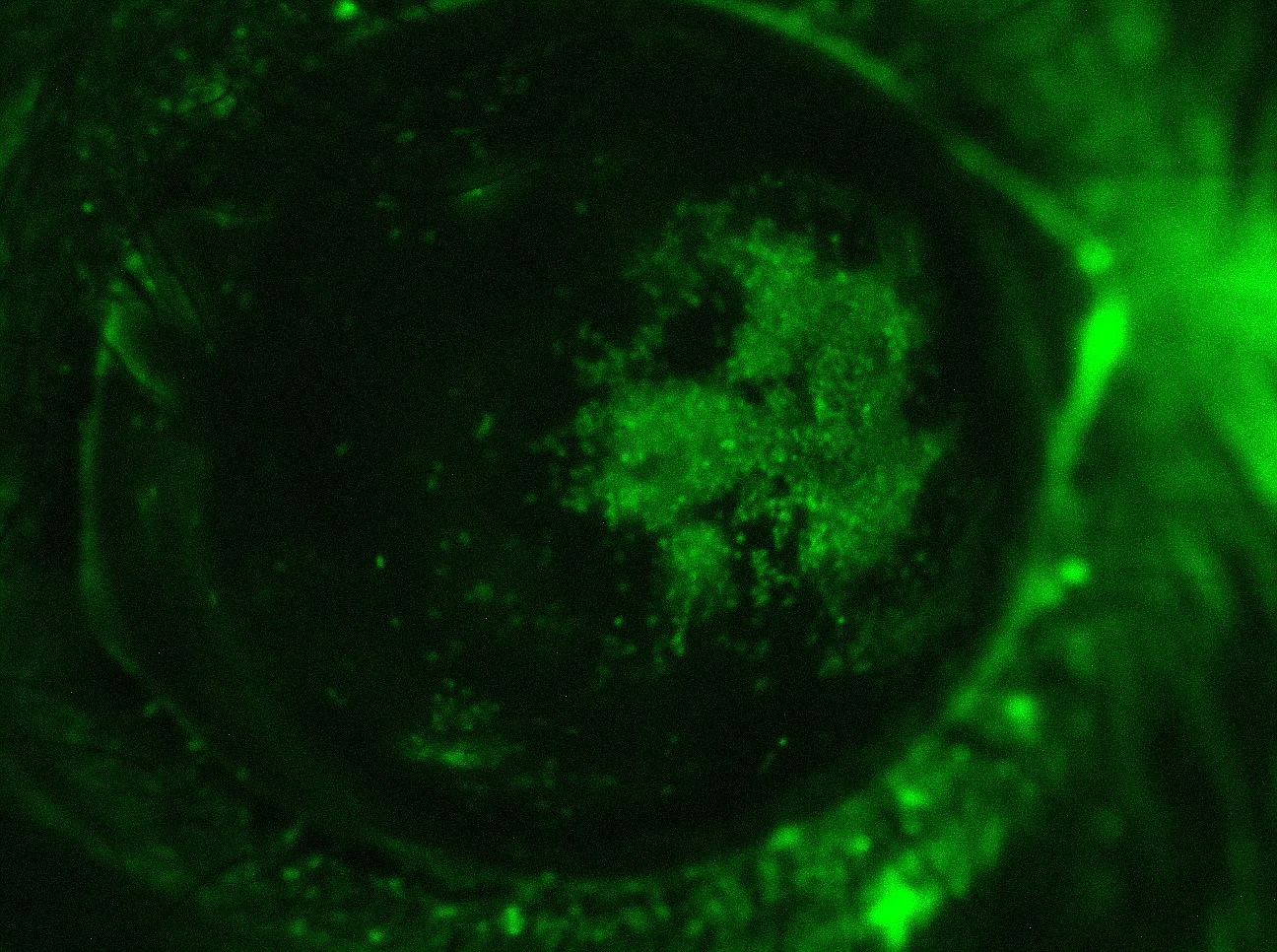 Figure 1. Corneal fluorescein staining of damaged epithelial cell layer.